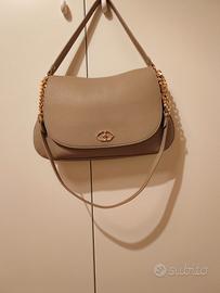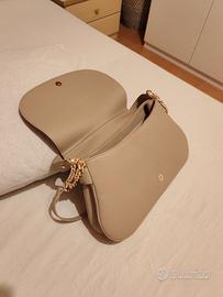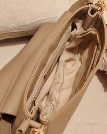 In similpelle, mai indossata, tracolla amovibile, 1 tasca interna con zip, 2 tasche interne senza zip.