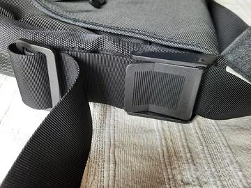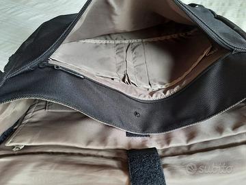 Borsa morbida a tracolla Muji originale, in cordura colore verde scuro, capienza 45 x 30 x 15 cm. Dotata di vano principale, vano notebook, vano frontale e tasche interne.