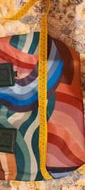 borsa multicolori, in ottimo stato, Ha tre scomparti di cui due con chiusura clip ed uno con cerniera.