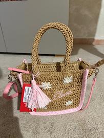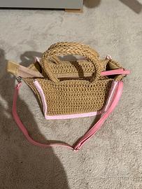 Borsa estiva Naj-Oleari in paglia Linea Flo con Profili rosa