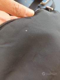 - sul retro c'e una macchia di circa mezzo centimetro probabilmente provocata da leggera bruciatura, comunque non visibile quando la borsa è indossata.