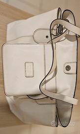 Borsa da donna in pelle bianca, marca Nannini. Contiene pochette interna sganciabile scamosciata. Dimensioni borsa esterna: Lunghezza 40, altezza 25, profondità 20. Contenuta nel sacchetto di vendita originale.