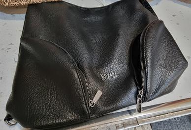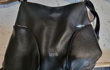 borsa in similpelle nera molto morbida,2 tasche ai lati una interna con zip e un'altra dietro sempre con zip.la chiusura è a zip lunga
