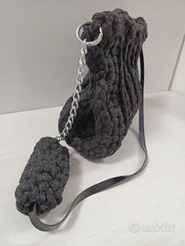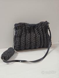borsa a spalla in fettuccia grigia con tracollina finta pelle,chiusura a calamita