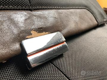 #borsa porta PC (sino a 17”) e porta documenti della #NAVA. Usata per diversi anni con grossi segni di usura all’esterno. I tessuti interni e le cerniere sono come nuove. Non ci sono macchie o strappi. Le parti danneggiate sono visibili in foto.