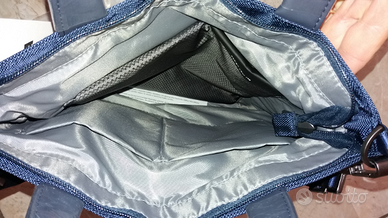La borsa è corredata di tracolla regolabile e eventualmente staccabile tramite pratici moschettoni.