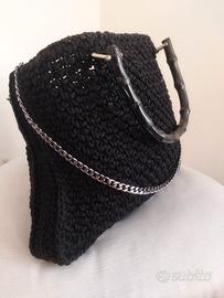 borsa artigianale con manici di bambù vero laccati nero catena removibile