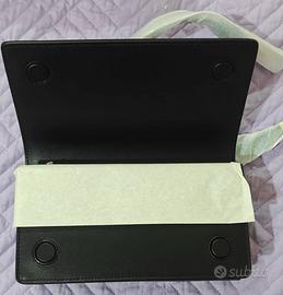 2 scoparti, 1 piu ampio con chiusura calamitata + 1 più sottile con chiusura con zip con Tracolla regolabile.