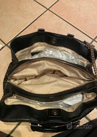 Borsa nera in ottime condizioni con 3 tasche interne di cui una ha la cerniera. Si puo usare sia a mano che a traccola, molto comoda