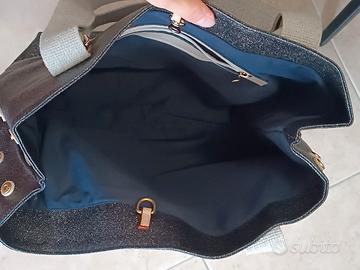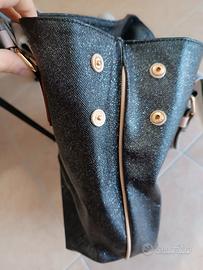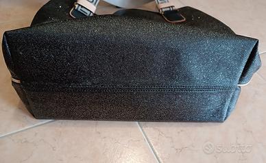 Borsa tote nera glitterata con stampa Mickey Mouse, ispirata al design LW. - Tessuto glitterato Nero con riflessi dorati. - Rifiniture bellissime. - Interno in tessuto blu. - Dettaglio: Stampa Mickey Mouse - Manici in corda con logo - Dimensioni 50x34. Nuovissima, senza difetti , molto bella. Per ulteriori dettagli contattatemi in privato.