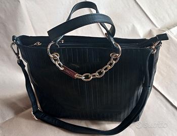 Vendo borsa nera in ecopelle marca Lancetti usata pochissimo, praticamente come nuova. Media grandezza, con particolare catena sulla parte frontale, manici e tracolla removibile. L'interno è foderato ed è in ottime condizioni.