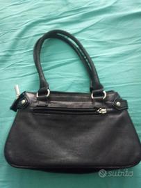 Piccola borsa a due manici in ottime condizioni perchè usata pochissimo. In similpelle molto morbida con due scomparti interni, lampo e due tasche. Inoltre sono molto comode le due lampo esterne, una sul davanti e l'altra sul retro.
