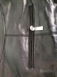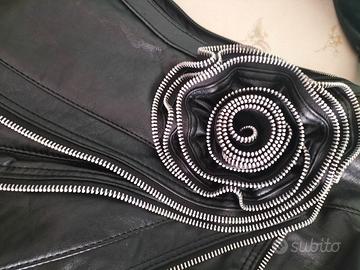 Borsa nera, manici corti. Chiusura con cerniera. Tasche interne con chiusura a cerniera. Grande decorazione a forma di fiore fatta con cerniere. Molto capiente e comoda, buone condizioni.