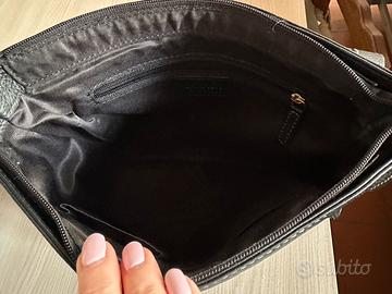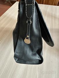 Borsa nera con tracolla in similpelle. Dietro ha una lampo con scomparto. Davanti si chiude con chiusura lampo più bottone a calamita. Nuovissima. Misura lunghezza 33 cm Altezza 28 cm Larghezza alla base 13 cm