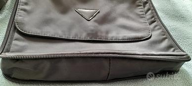 Borsa nera tessuto sintertico chiusura a cerniera, cerniera nel contorno, copertura con bottone a calamita.