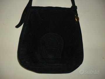 Borsa nera in morbida vera pelle camoscio con tracolla regolabile, con patta, ampia tasca interna, poco usata, in ottime condizioni.