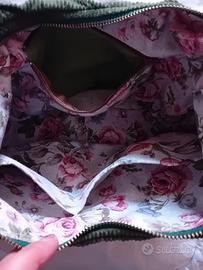 borsa in velluto nuova mai usata colore verde tre tasche interne tutto come da foto allegate
