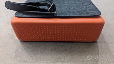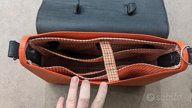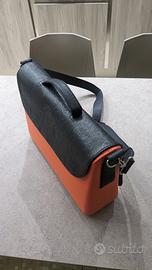 Come da titolo e immagini borsa O Bag a tracolla linea O Folder colore corpo Arancione patta nera con motivo grafico con tre vani interni. Materiale termoplastico.Tracolla amovibile e chiusura magnetica con uncino. Misure: 40x13x30. Mai usata.