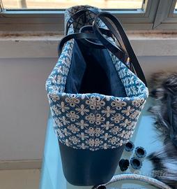Borsa O BAG originale con bordo damascato, 2 ricambi in stoffa e pelliccia ecologica , ricambio manici color argento nuovi, ricambio tappi manici e borsina interna. Usata pochissimo. Borsa e ricambi, compresa borsina interna originali.