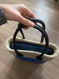 Borsa O Bag blu con bordo in maglia