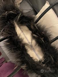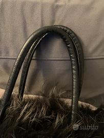 Borsa o bag colore blue elettrico con manici in pelle nera e scocca di pelliccia vera con riflessi hrigi