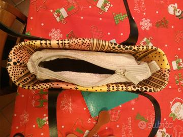 Borsa O Bag Chic con sacca interna a cerniera e doppio bordo , uno in pelliccia rosa e l'altro tipo pelle multicolore . Manici tipo pelle . Come nuova.