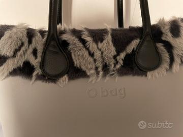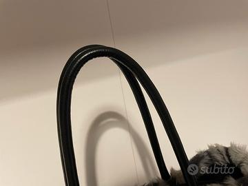 Borsa O bag con manici in pelle neri, pelliccia e sacca interna nera. Come nuova in ottime condizioni.