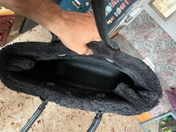 Borsa O bag nera con pelliccia, usata ma come nuova