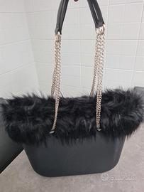 Borsa O Bag nera con bordi in eco pelliccia e manici catenella , molto elegante, nuova mai usata , trattasi di regalo doppio . Ritiro di persona a Nerviano (Milano).