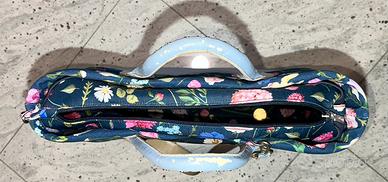✔️ Manici corti + tracolla regolabile con dettagli traforati e inserti colorati: comoda da portare sia a mano che a spalla!