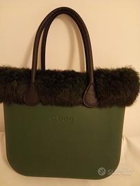borsa o bag verde con bordo di pelliccia naturale verde.