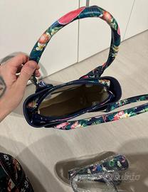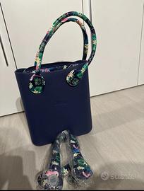 Borsa O’Bag color Blu Mezzanotte con maniglie floreali, disponibile anche tracolla di ricambio