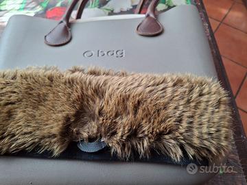 borsa o bag color tortora, manici in pelle marrone , fodera interna corda e bordo pelliccia sintetica