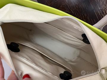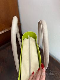 O Bag originale verde acido (non è fluo, ho messo foto con luce diversa per mostrare meglio il colore) con sacca interna beige. Segni di usura visibili in foto. Manici in ottimo stato.