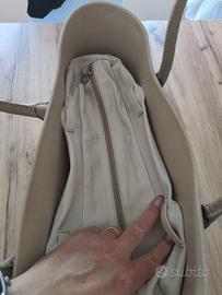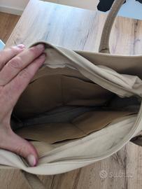 Borsa O Bag modello classico, tenuta bene, sacca interna con 4 tasche, maniglie in pelle. A mano o sopra la spalla .