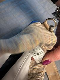 Borsa Obag colore blu chiaro con sacca interna beige e tracolla decorata