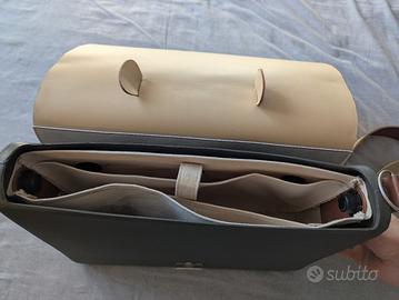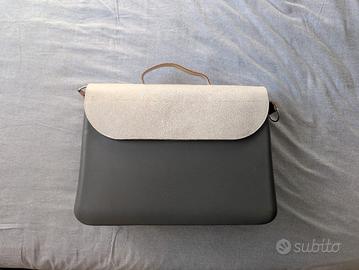 Scocca O'Folder, può portare un notebook di piccole dimensioni. Sacca interna senza zip in tessuto, tracolla lunga in ecopelle.