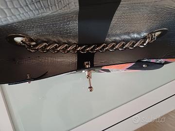 Modello: Borsa/Pochette Reversibile. Puoi portarla con il lato fantasia geometrica (più estivo/bold) o con l'altro lato a tinta unita (o con una diversa fantasia, più discreto).
