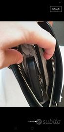 Nuova come vedete dalle foto c'è la plastica sulle cerniere e la carta. Misure 25×35.5 con custodia porta borsa. Con tracolla. 3 scomparti una con cerniera e 2 con bottoni
