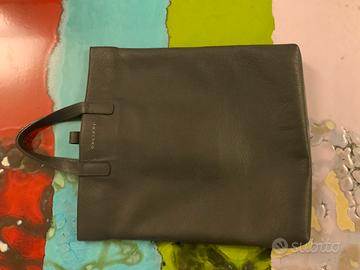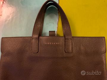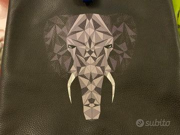 Borsa pelle Orciani originale con manici unisex misure: altezza cm 40, larghezza cm 37,profondità cm 5,5 colore grigio fango con immagine frontale dí elefante chiusura con cerniera, come nuova