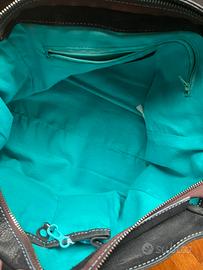 Completa di patta in pelle staccabile e utilizzabile separatamente come mini bag.