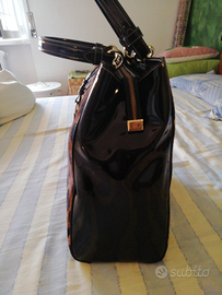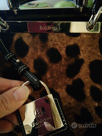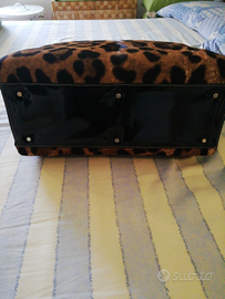 Borsa nuova originale Baldinini maculata in cavallino e lati in vernice nera, manici a mano. Molto capiente, misure h 37 L 36 *17 di profondità.. Non ha la tracolla.