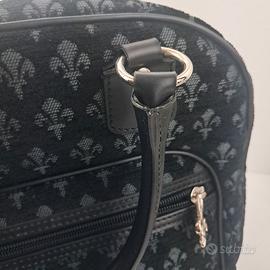 Borsa originale Patrick Cox nuova, mai utilizzata. Realizzata in tessuto jacquard nero con elegante motivo fleur-de-lis tono su tono, impreziosita da dettagli in vera pelle e finiture metalliche color argento. Modello strutturato e capiente (35 x 28 x 21 cm), ideale per uso quotidiano o lavoro. Dotata di: doppio manico rigido tasca frontale con zip e charm decorativo piedini metallici alla base interno ampio e ben organizzato con più scomparti Condizioni perfette Borsa raffinata e versatile, dal design iconico del brand. C00015325-50 abbigliamento, borsetta, accessori moda