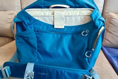 Vendo borsa da viaggio Daylite Messenger di colore blu, ideale per spostamenti quotidiani (es. per lavoro) e piccoli viaggi. La borsa è stata usata solo due volte ed è praticamente nuova. Si tratta di una borsa pratica ed elegante dotata di tracolla imbottita regolabile, tasca adatta alla maggior parte dei portatili fino a 14 pollici, gancio portachiavi, e tasche a volontà, tra cui una elasticizzata per la borraccia. Fibbie di chiusura pratiche ed efficaci. Vendo causa inutilizzo.