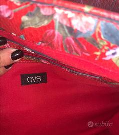 Borsa OVS in Poliuretano. Rossa con disegni Fiorati,