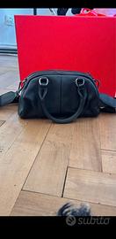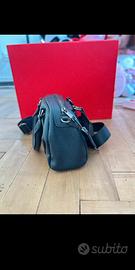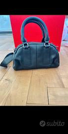 Nero martellato - Ottime condizioni Descrizione: Vendo borsa nera acquistata da Deichmann, molto versatile e capiente nonostante le dimensioni compatte. La borsa è realizzata in ecopelle con effetto martellato, che la rende molto resistente e difficile da graffiare. Caratteristiche: • Doppia portabilità: Dispone di manici corti per portarla a mano e di una tracolla larga in tessuto regolabile e rimovibile (stile sportivo/urban), molto comoda perché non taglia la spalla. • Interno: Ampio scomparto principale con chiusura a zip robusta. • Colore: Nero con dettagli metallici color canna di fucile. • Condizioni: Usata ma tenuta molto bene, senza segni evidenti di usura o difetti.