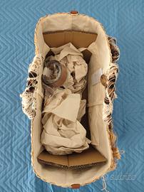 Cerchi l’accessorio perfetto per la tua estate? Questa borsa a mano firmata Alex Max è un capolavoro di artigianato e stile. Unisce il fascino naturale della paglia intrecciata a dettagli glamour e romantici. Perché te ne innamorerai: Design Unico: Decorata con maxi fiori in rafia e corda, arricchiti da deliziose applicazioni a forma di coccinella e fiorellini colorati. Dettagli di Classe: Manici rivestiti in tessuto animalier (leopardato) e pizzo bianco per un contrasto super sofisticato. Praticità: Interno capiente e foderato, completo di tracolla rimovibile ancora sigillata e tasca interna con zip. Qualità: Brand Alex Max, conosciuto per l'attenzione ai dettagli e lo stile italiano. Condizioni: Nuova mai usata, con cartellino originale e confezionata con cura (come da foto). Ideale per: Look da spiaggia ricercato, aperitivi al tramonto o per dare un tocco boho-chic ai tuoi outfit estivi in città. Dimensioni: 50x30x20 📦 Spedizione rapida e imballaggio super accurato per preservare i fiori in rafia!