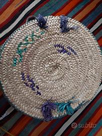 Borsa mare Coffa grande in palma naturale e colorata. Viola verde bordeaux. Manici corti. Artigianale. Grande capienza. Molto resistente. Dimensioni mostrate in foto. Bella per l'estate o come contenitore, cesta in casa. Misura da manico a manico 35cm e da destra a sinistra 45cm, altezza 27 cm. Tutte le coffe che si vedono nella foto sono in vendita