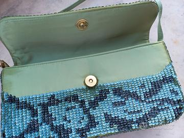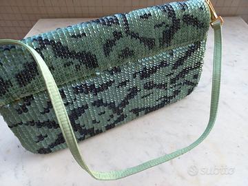 Borsa in paillettes disegno animalier , verde , con piccola tracolla raso