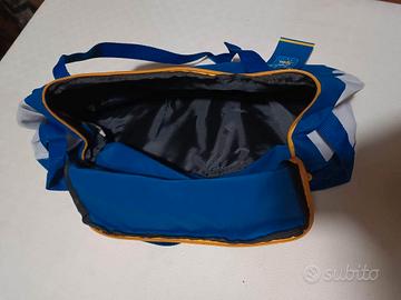 Borsa sportiva Eurospin, ideale per la palestra o per brevi viaggi. Colore blu con dettagli gialli.